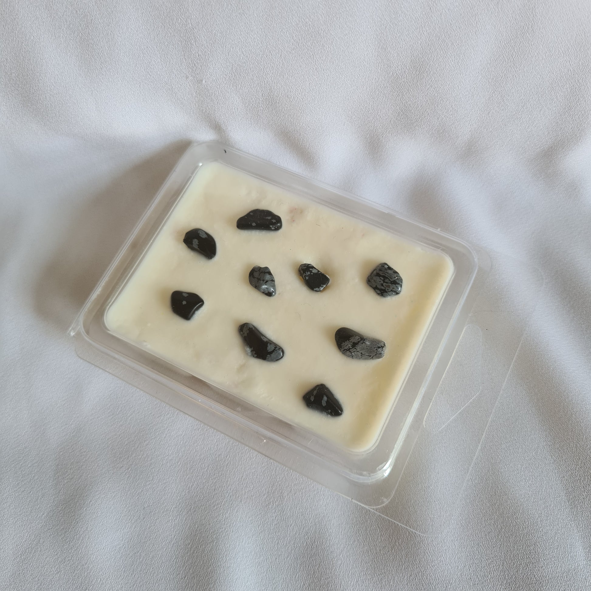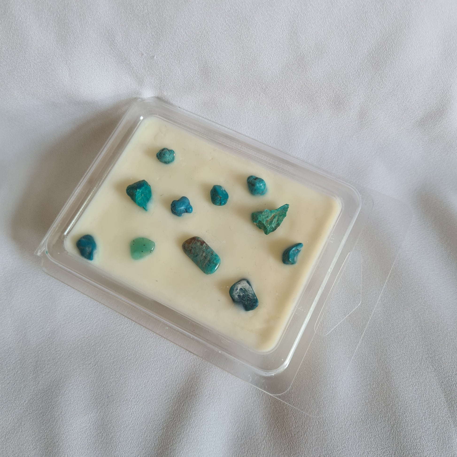 A selection of 100% Soy Wax Melts (6 in a Pack) infused with natural scents and authentic semi-precious gemstones.