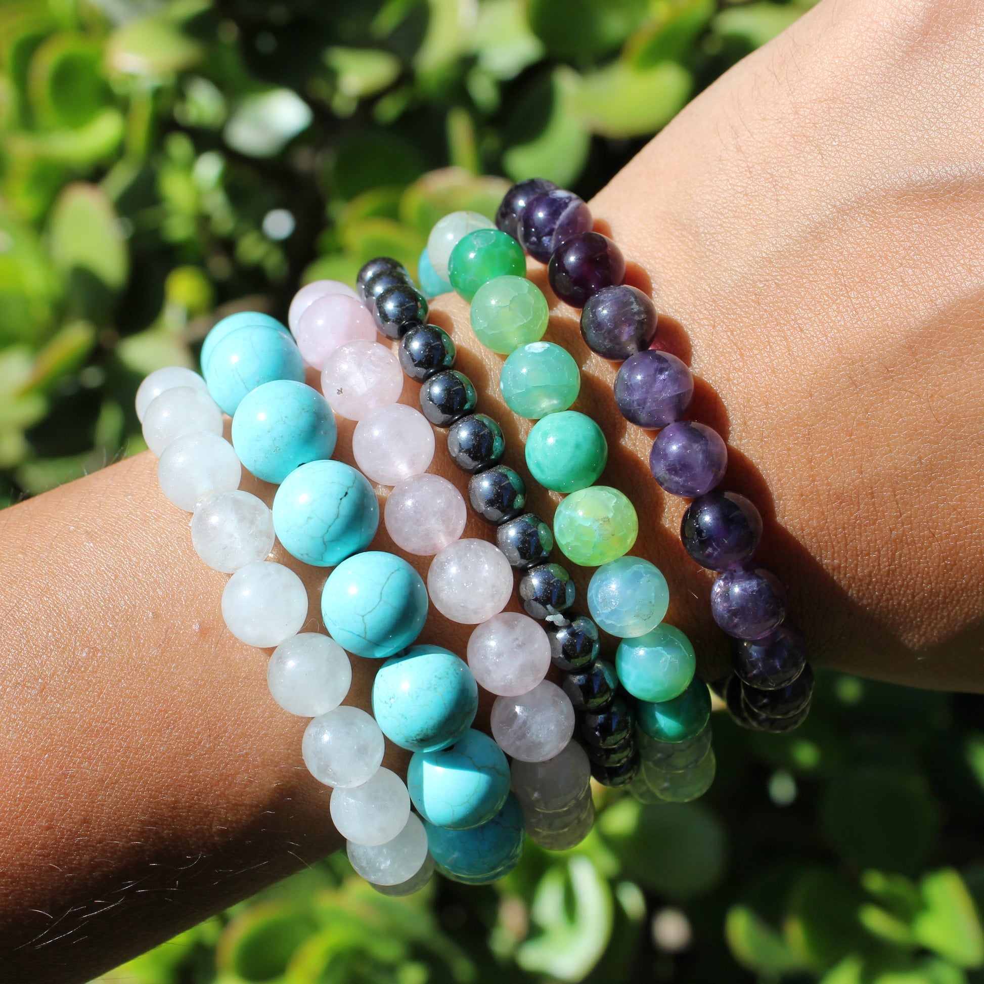 Introducing our stunning 8mm round gemstone bracelets, designed to adorn your wrist with elegance and grace. Each bracelet boasts genuine 8mm round gemstones meticulously strung on a stretchy cord, ensuring a comfortable and secure fit for all-day wear. Whether worn alone as a statement piece or stacked with other favorites, these bracelets exude sophistication and style. The smooth, polished gemstones showcase their natural beauty, while the stretchy cord provides ease of wear and convenience. Elevate your look with these versatile accessories, perfect for adding a pop of color and vibrancy to any outfit. Choose from a variety of gemstone options to suit your mood and style, and embrace the beauty of natural gemstones with every wear.