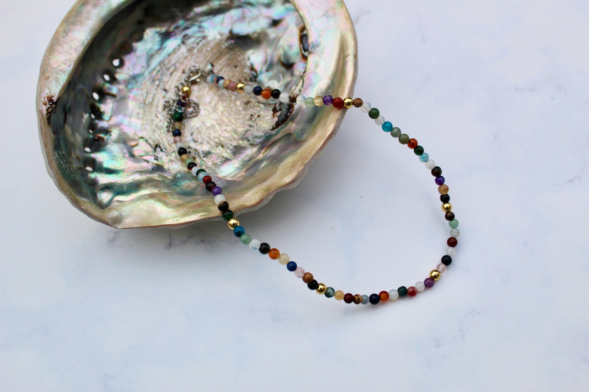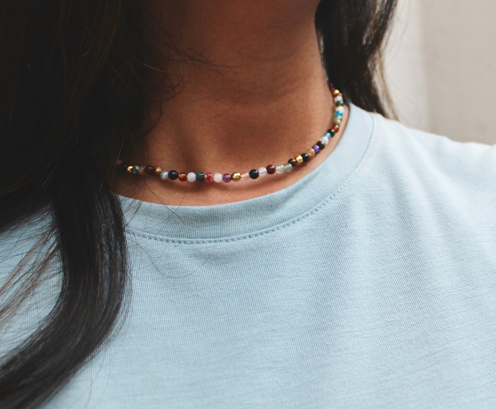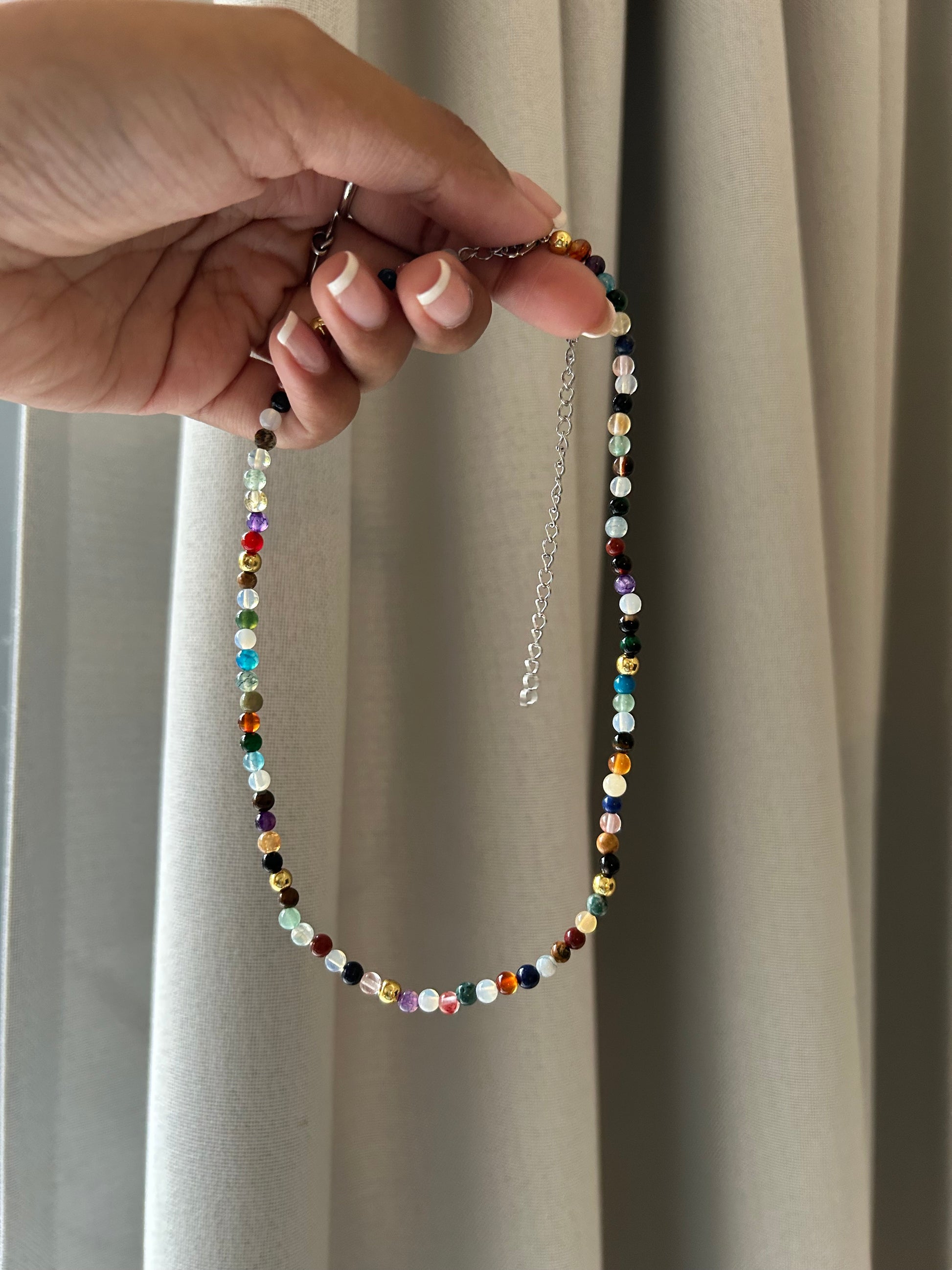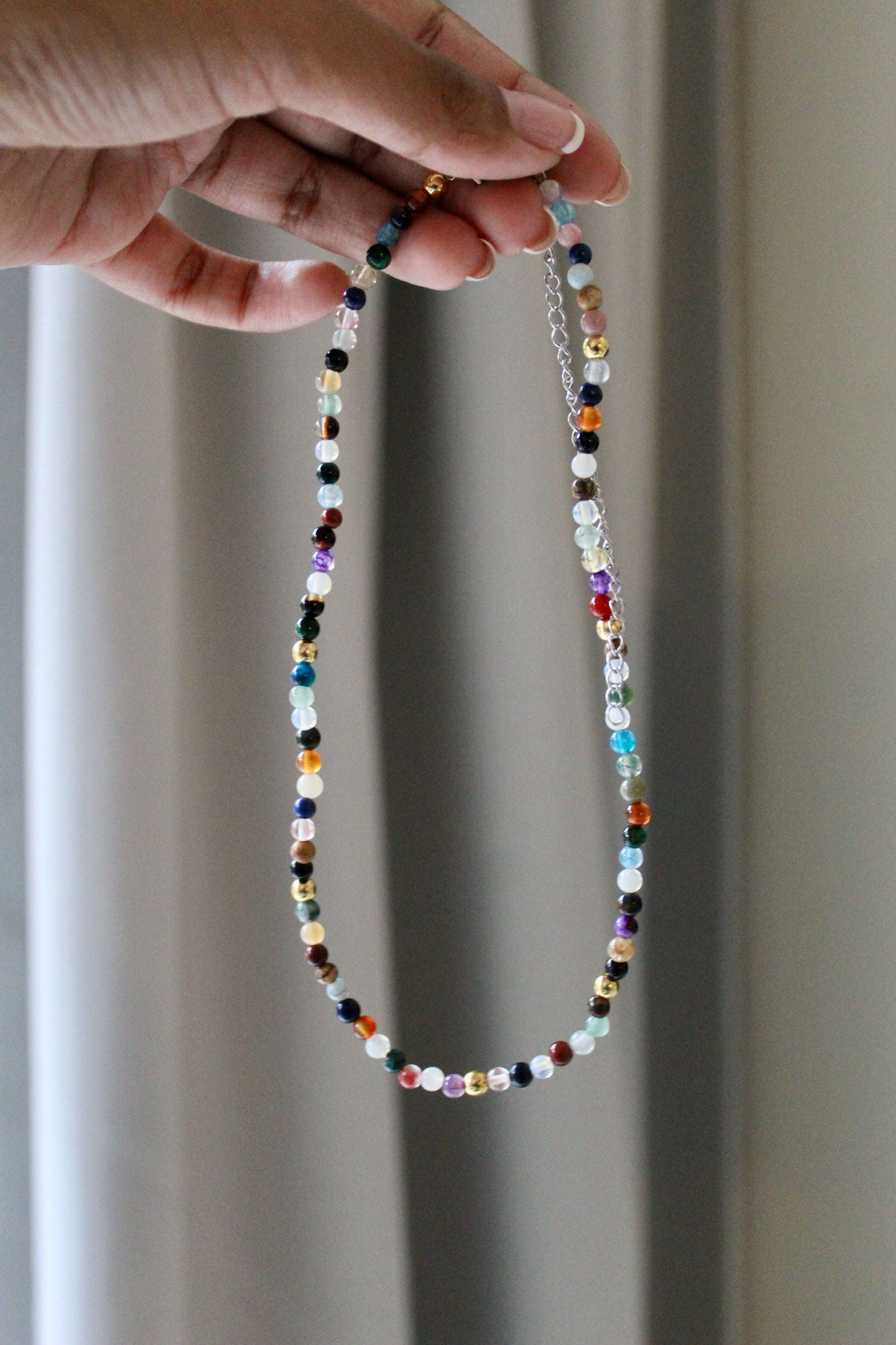 Introducing our exquisite Mixed Gemstone 4mm Necklaces, where elegance meets versatility. Crafted with care and attention to detail, each necklace features a captivating blend of vibrant gemstones, ranging from lustrous amethyst to fiery garnet, creating a stunning symphony of colors that effortlessly elevates any ensemble. Whether you're adding a pop of color to your everyday attire or accessorizing for a special occasion, these necklaces are the perfect statement piece. With a delicate 4mm bead size and a choice of lengths to suit your preference, they offer both sophistication and comfort. Elevate your style and embrace the beauty of diversity with our Mixed Gemstone 4mm Necklaces.