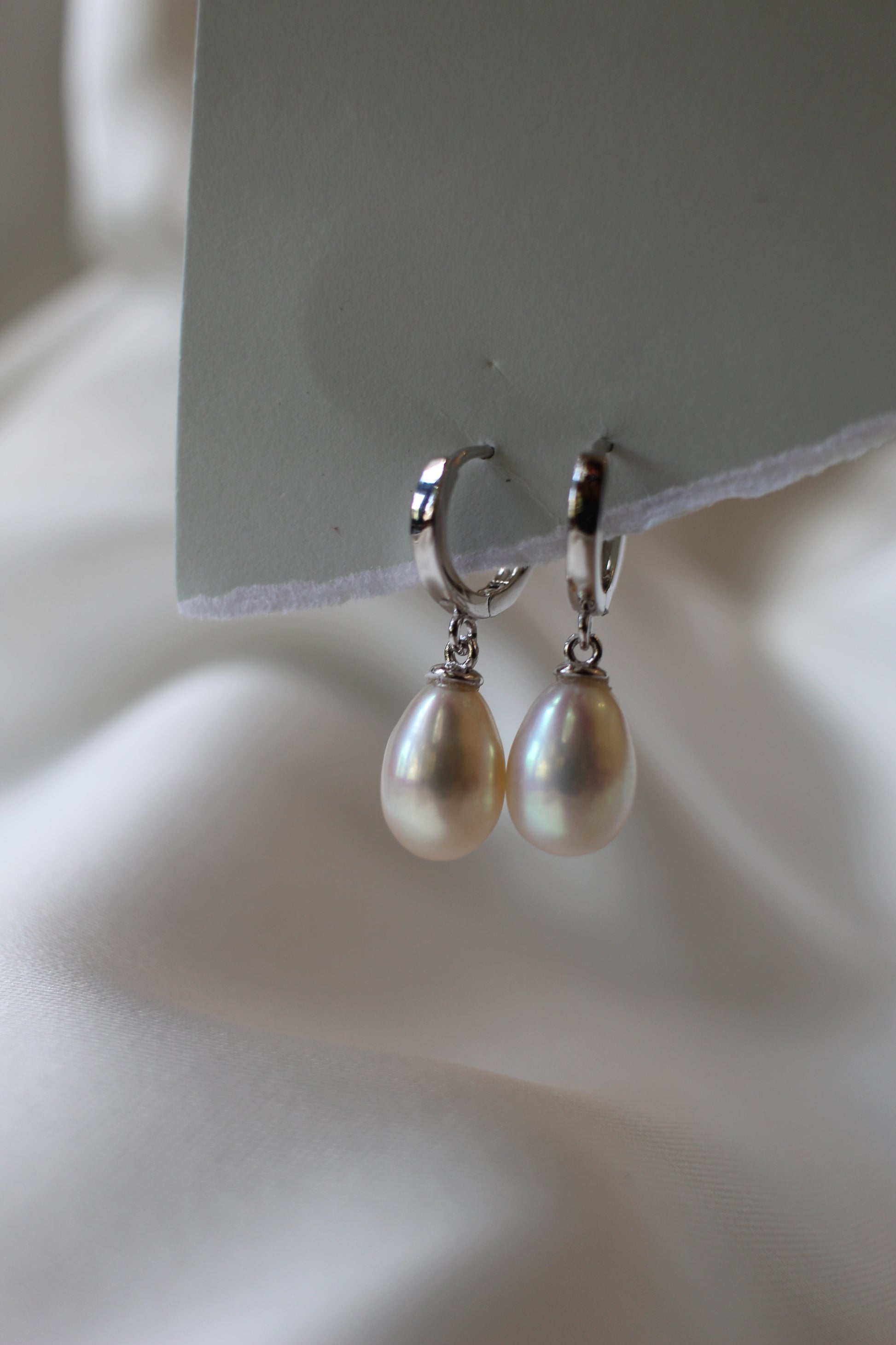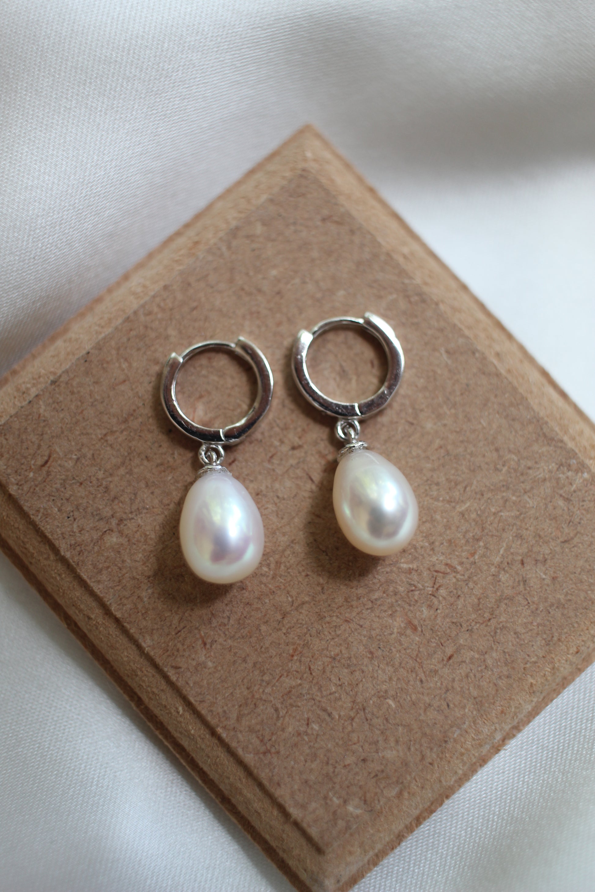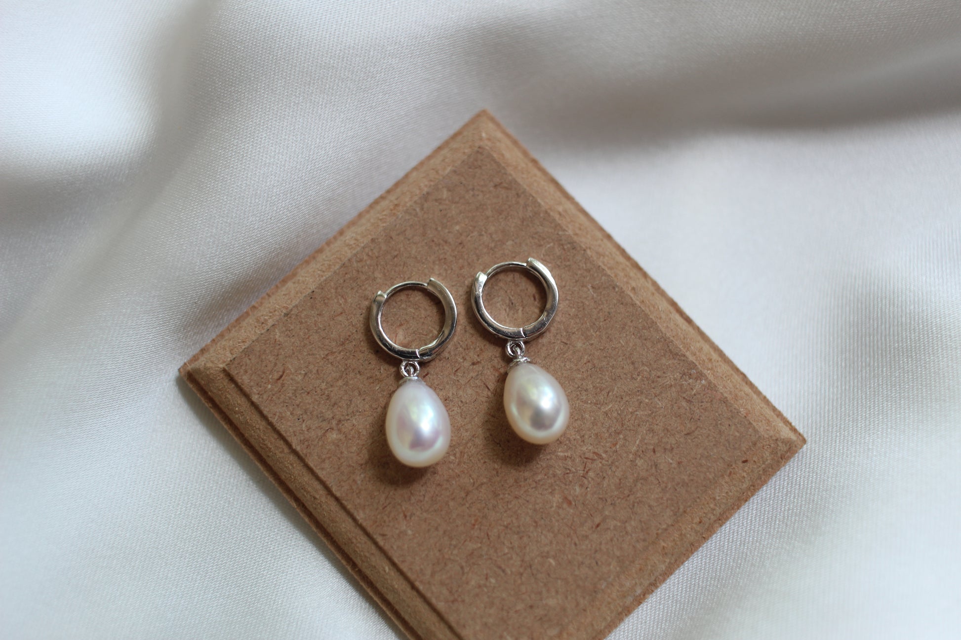 Elegant silver hoop earrings with delicate pearl drops, combining timeless charm with modern sophistication—perfect for bridal wear or everyday elegance.