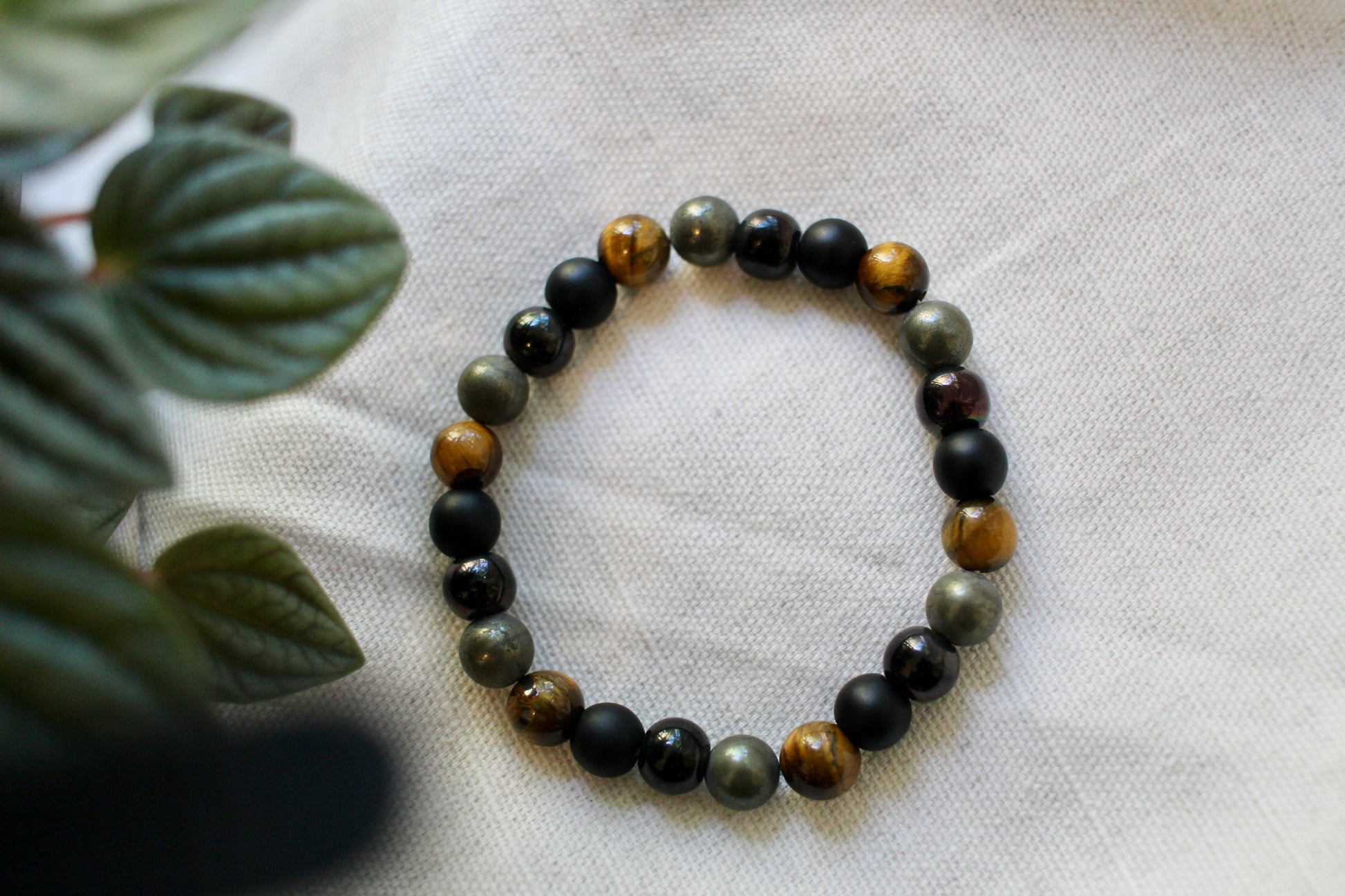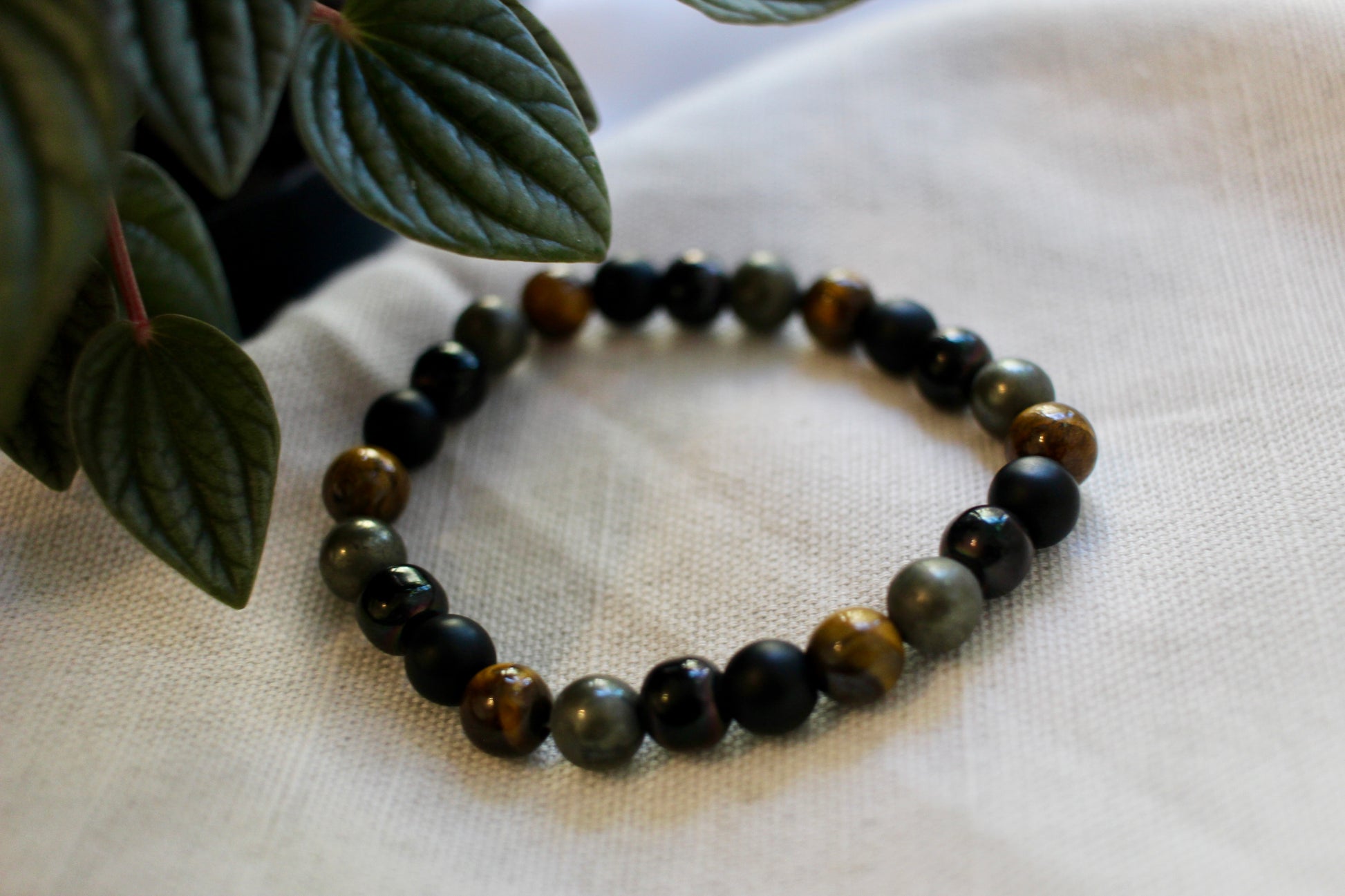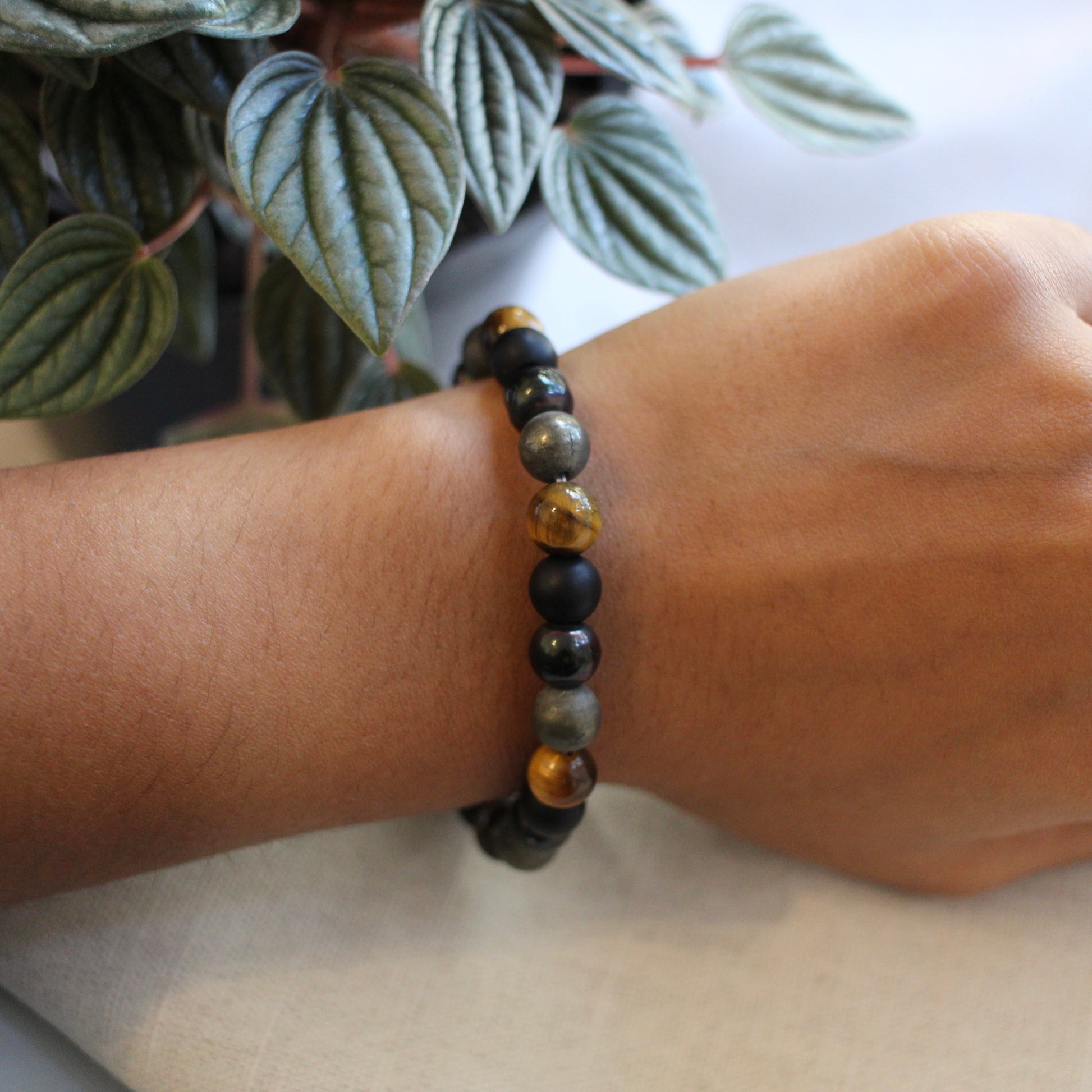Our Triple Protection Bracelet combines the powerful energies of Black Obsidian, Hematite, and Tiger’s Eye—three stones known for their strong protective and grounding properties. Together, they create a shield against negative energy while enhancing focus, inner strength, and clarity.